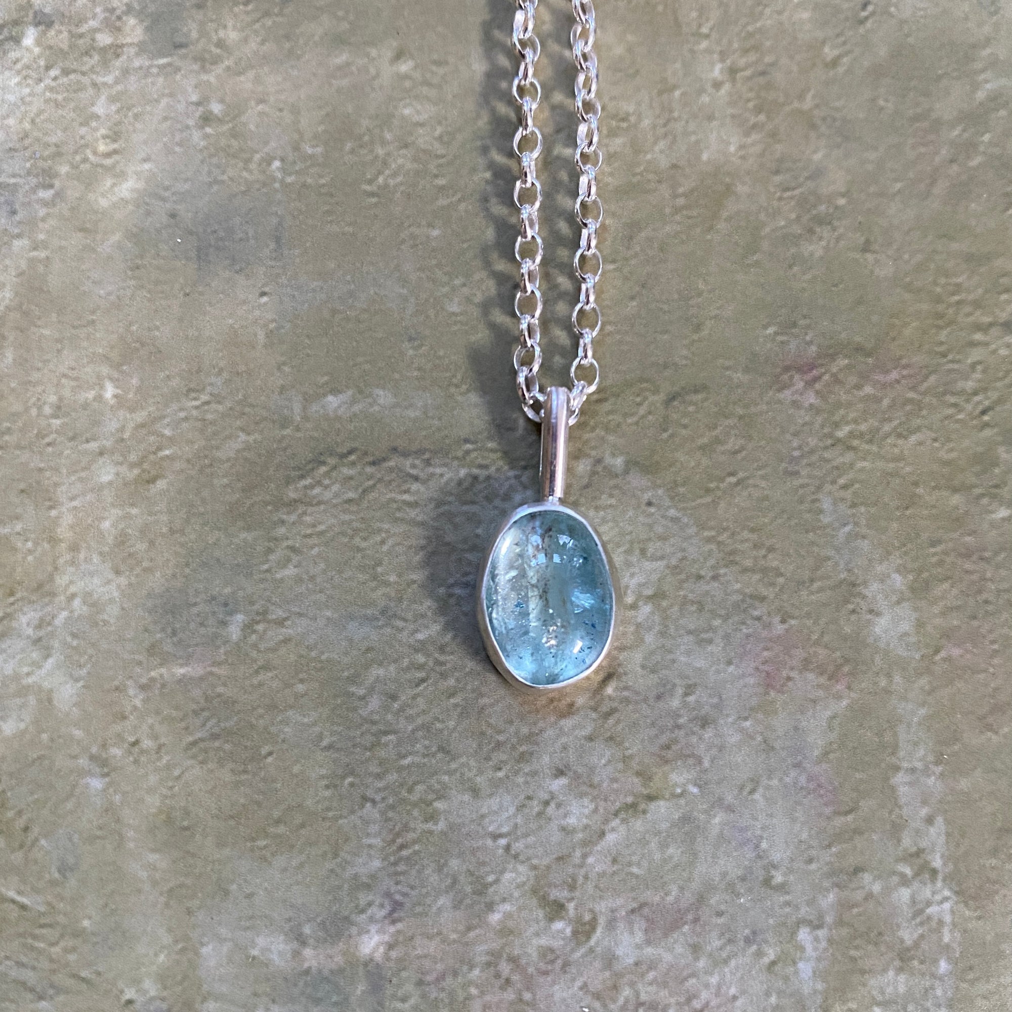 This piece of Apatite is set in shiny sterling silver. The pendant is strung on 18" of sterling silver chain and is finished with a lobster clasp, at the back.