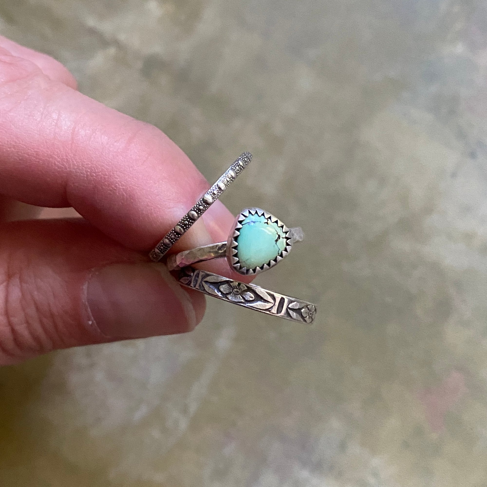 All rings have been slightly oxidized to enhance the texture and make the turquoise POP!